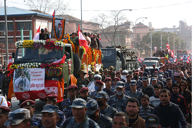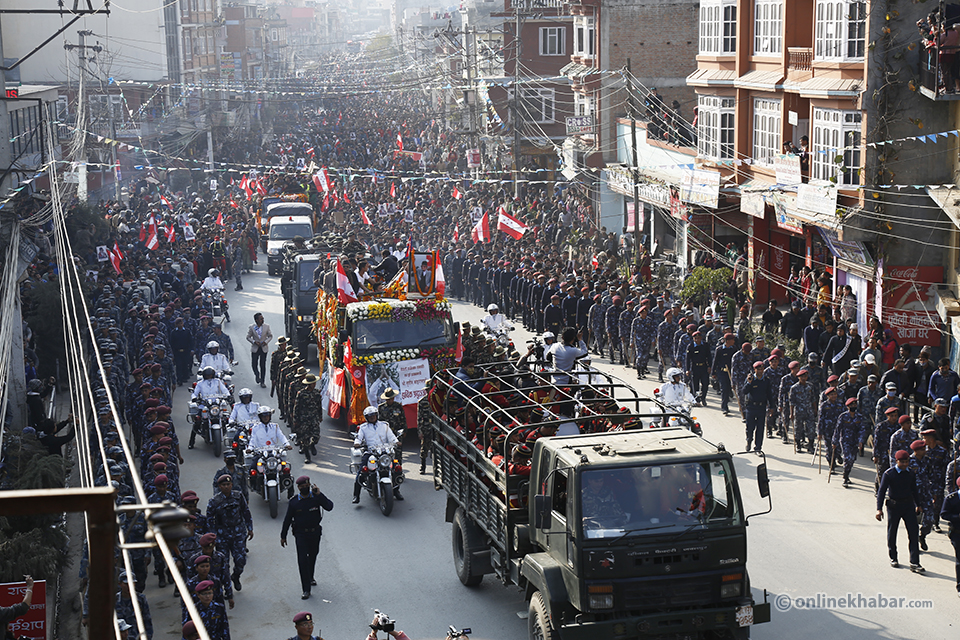 २७ माघ, काठमाडौं । नेपाली कांग्रेसका दिवंगत सभापति एवं पूर्व प्रधानमन्त्री सुशील कोइरालाको राजकीय सम्मानका साथ पशुपति आर्यघाटमा अन्त्येष्टि गरिएको छ ।